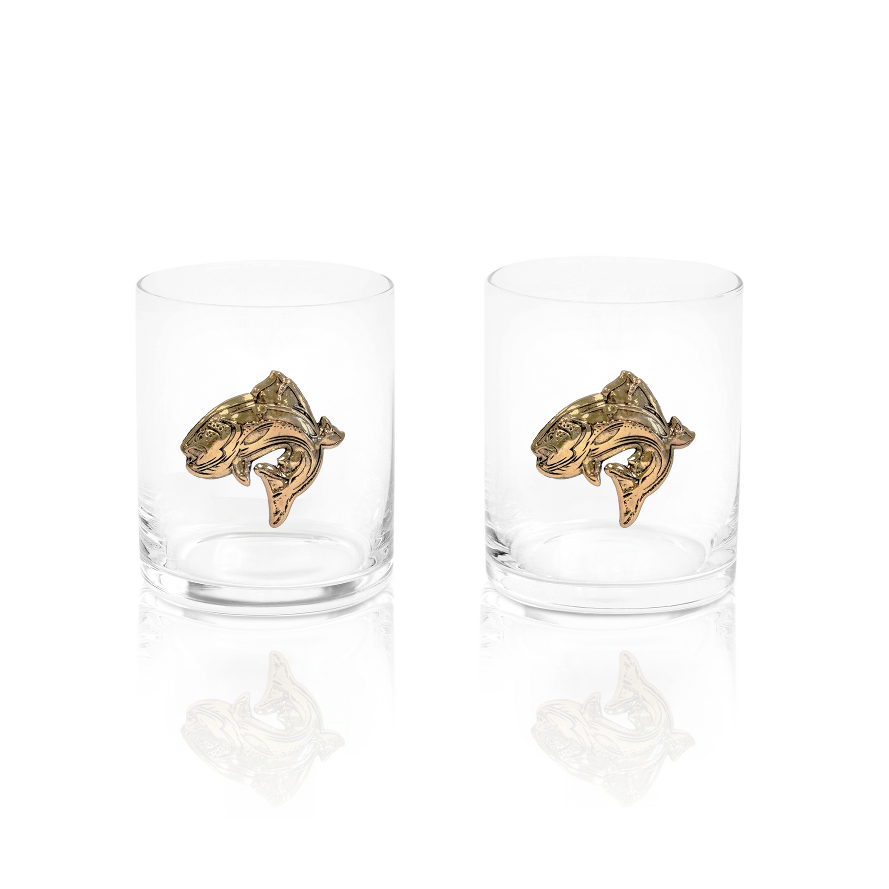 A whiskey glass that's crafted with masterful quality for your bold spirit & bold taste in whiskey. These 13oz crystal clear glasses proudly display a majestic gold fish. The thick round base of the glass provides a sturdy weight for unwavering durability and a substantial feel as you hold the glass in your hands.